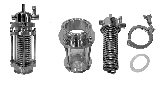 ✔ Vertikālais Dimrota deflegmators ar dubultspirāli — līdz 4 kW.
